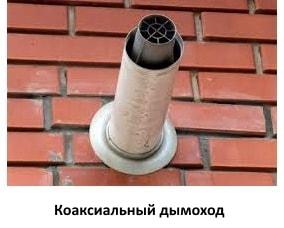 Коаксіальний димохід розроблений спеціально для газових опалювальних приладів і може бути виведений назовні (горизонтально) просто крізь стіну будівлі (не вимагає виведення труби вгору до або вище рівня даху). Такий димохід простий у монтажі, практичний в обслуговуванні та не вимагає наявності котельної.
