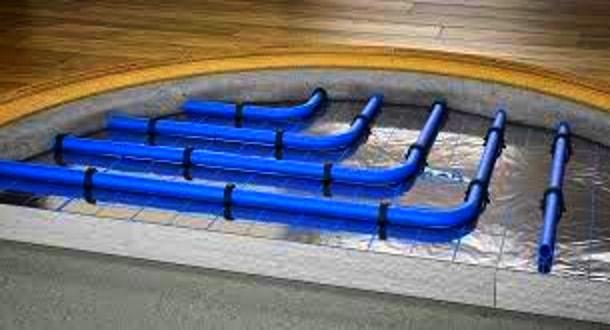 Під час «мокром» монтажу труби зверху заливають бетонною стяжкою, а під час «сухої» укладки під підлоговим покриттям кладуть пластини з алюмінію і вологопоглинальні прокладки.