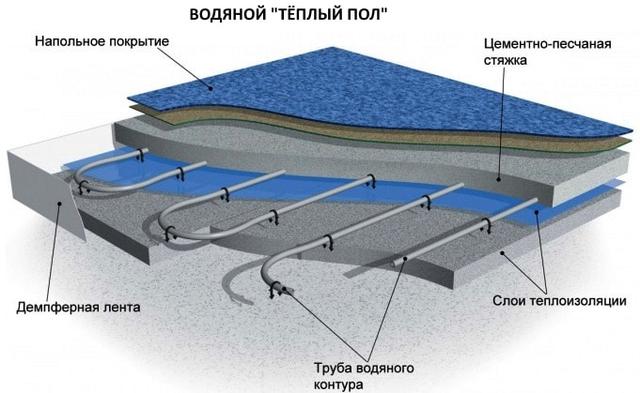 Основні елементи «теплої підлоги», влаштованих із використанням труб