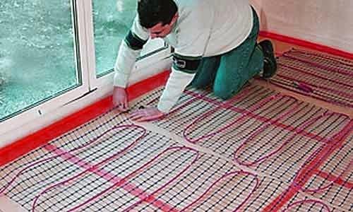 Сітку з нагрівальними елементами або провідники потрібно укласти в стяжку під керамічну плитку.