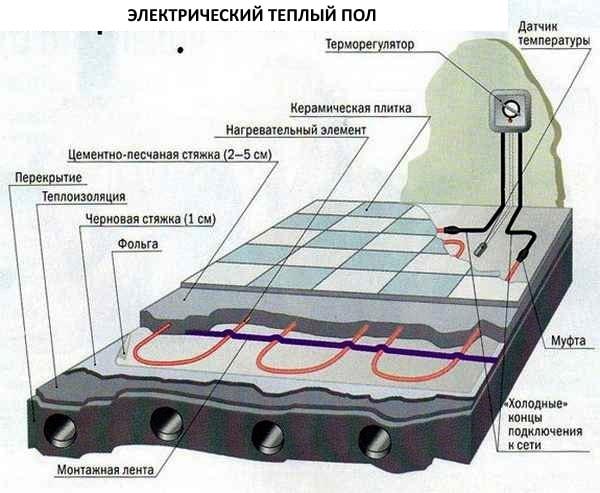 Нагрівальний мат (багатометровий провідник малого діаметра, закріплений на полімерній сітці), кабель або інфрачервоний плівковий нагрівальний елемент
