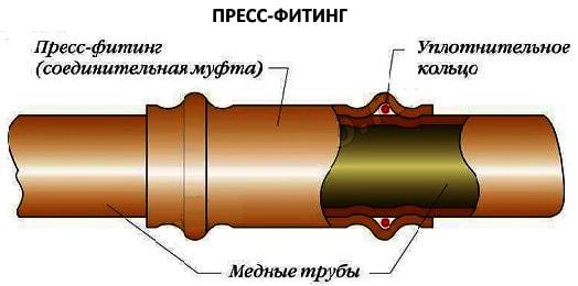 Прес-фітинг. Створює нероз'ємне міцне з'єднання. Виповнюється за допомогою пресмашини або пресклейної та не підлягає розбирання — це мінуси таких сполук.