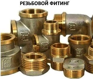 Нарізний фітинг. Найпростіший з'єднувальний елемент — складається з корпусу з нанесеної на зрізи різзю. Герметизацію виробляють за допомогою ущільнювача — ФУМ-стрічки, лляної нитки та ін. Оскільки мідь — гнучкий метал, важливо не перетягнути з'єднання.