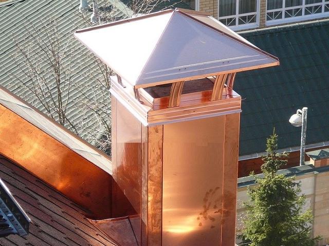 У двошаровому димоході мідний кожух використовується для надання конструкції стильного солідного зовнішнього вигляду.
