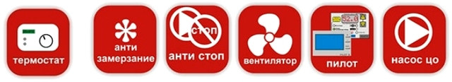 Додатково котел можна обладнати вентилятором, групою безпеки, димоходом, обв'язкою, акумулювальною ЄМКІСТЬЮ, стабілізатором напруги.